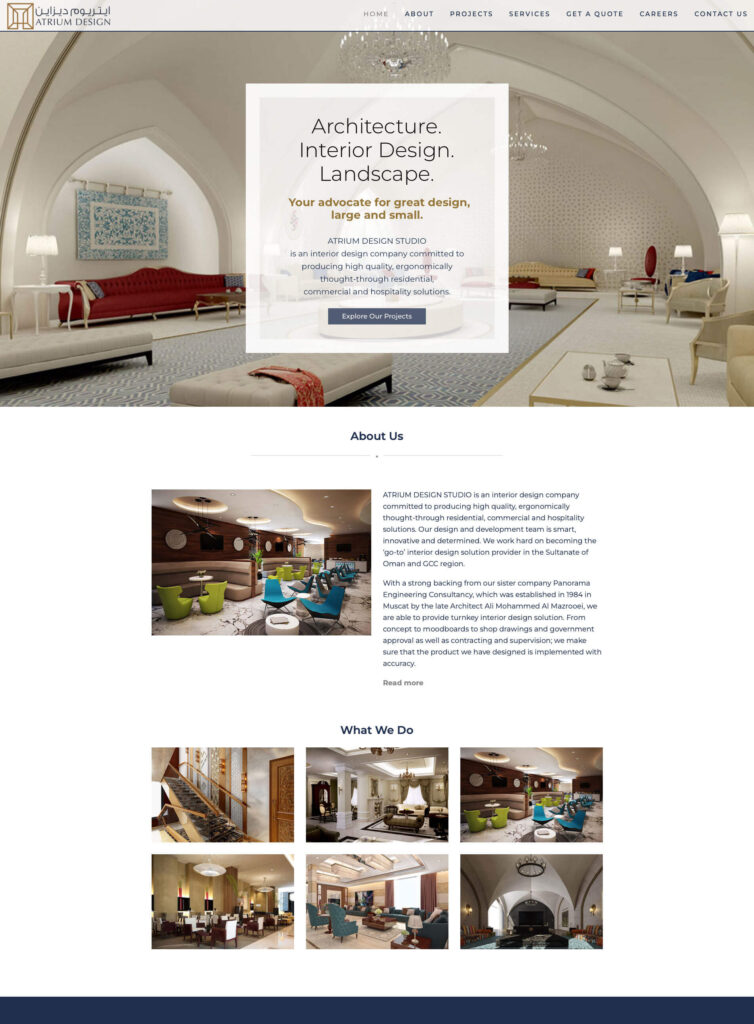 ATRIUM DESIGN STUDIO is an Oman-based interior design company that is committed to producing high quality, ergonomically thought-through residential, commercial and hospitality solutions. We created a clean minimal website layout for them and is compatible with mobile and tablet.